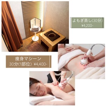 (よもぎ蒸しを選択し、メニュー追加で選択可能です)